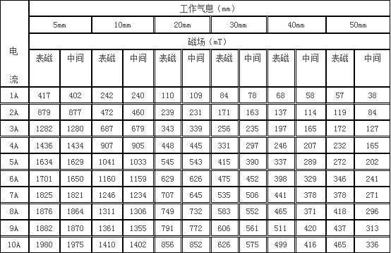 5、剩 磁:≤5mT 工作氣隙10mm時